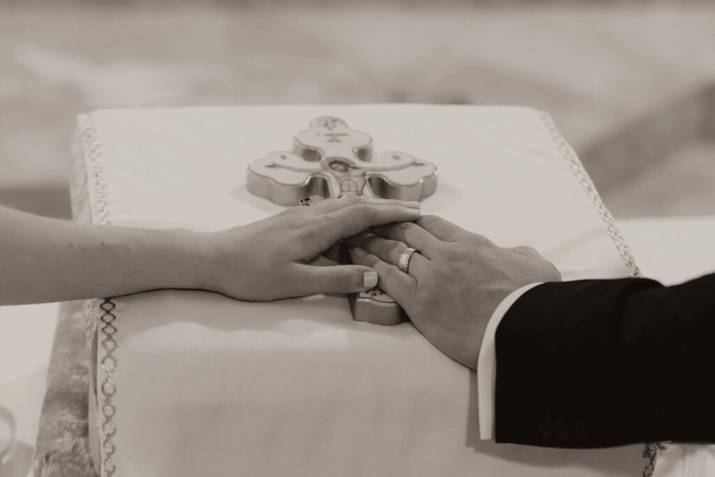 My best friend married a Croatian Catholic and included this touching tradition to her wedding. Also known as the “marriage crucifix,” it originated from a small town in Bosnia-Herzegovina. When you approach the altar, the priest says, “You have found your cross and it is a cross to be loved, to be carried, a cross not to be thrown away, but to be cherished,” after which he blesses the Crucifix. During the exchange of vows, the groom holds the crucifix in his right hand while the bride places her’s on the top of the crucifix as a symbol of your unity as husband and wife. Before kissing each other, you first kiss the figure of Christ. This tradition points to the source of your love, Jesus on the cross. This cross can then be placed in your home as a reminder of your commitment to each other and our Lord. I recommend placing it somewhere where you can pray in front of it both in times of gratitude and of difficulty.
